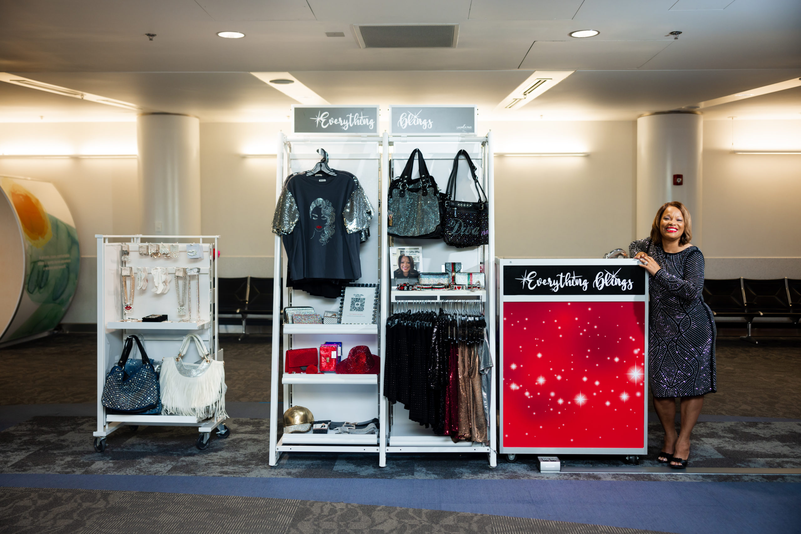 Everything Blings Boutique has the mission to revolutionize the way people see and wear bling. Rhinestones and glitter are not just for special occasions but should be worn every day and in the most casual of situations. Having started selling rhinestone T-shirts, other items were quickly added based on requests from customers. The product lineup now includes clothing and accessories for women, men, children, drinkware, journals and a variety of fun, interesting items. The products are sold online, our flagship location in Clinton, Maryland and now at BWI Airport!